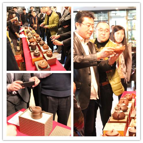 紫砂陶始于北宋,盛于明清,到清代,逐步形成独领风骚的紫砂文化。紫砂壶贮茶纳茗,汤不变色,味不涣散,冬可捂手,夏不易馊,有“世间茶具谓之首”的美誉。现如今,紫砂壶因其温润如玉的外表、古朴典雅的造型,配以壶体上那或苍劲或柔美的书法艺术,为越来越多的人着迷,已经不单单只是一件茶具,俨然成为了深蕴内涵的艺术作品。活动中,“紫砂之家”的专业人员为所有来宾展示并介绍了部分名人艺术家的作品(有漂洋过海从台湾海峡带来的顾景舟大师大作,有从福建远道而来的蒋蓉大师作品等等)。活动原定嘉宾30人,实际到场33人,现场人头攒动,气氛热烈,抽奖环节也异彩纷呈,在浓郁的艺术氛围中,此次活动圆满结束。