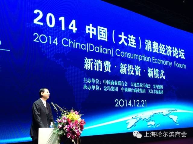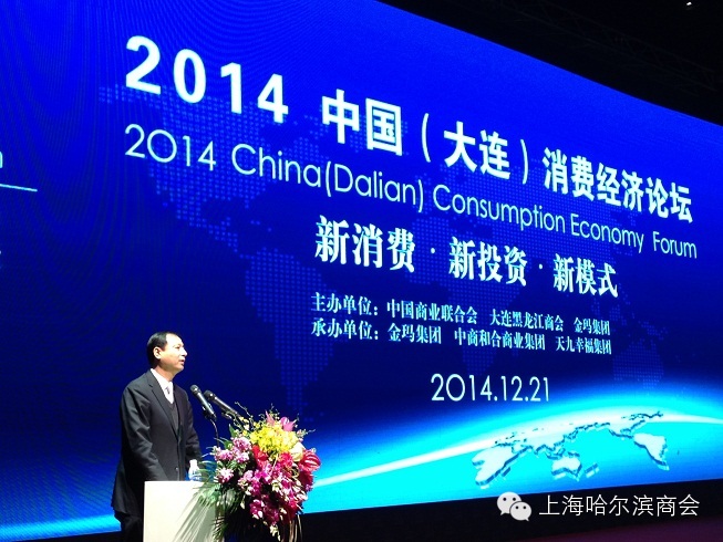 2014年12月21日,“2014中国(大连)消费经济论坛”在大连国际会议中心举行。原国内贸易部部长陈邦柱,辽宁省政协常务副主席刘国强,商务部流通发展司司长向欣,黑龙江省副省长孙尧,著名经济学家李稻葵,著名经济学家、世界新经济研究院院长陈瑜,中国商业联合会副会长刘建沪,何鲁丽副委员长代表、中国科协管理中心主任初炳英,伊春市市长高环,黑龙江省商务厅副厅长赵文华,世界杰出华商协会主席、华商500强俱乐部主席、天九幸福集团董事局主席卢俊卿,阿里巴巴集团高级副总裁高红冰及全国各地龙商商会会长秘书长等领导共2000多位嘉宾出席了本次论坛。我会常务副会长王雪松,副会长徐海峰应邀参加了本次活动。