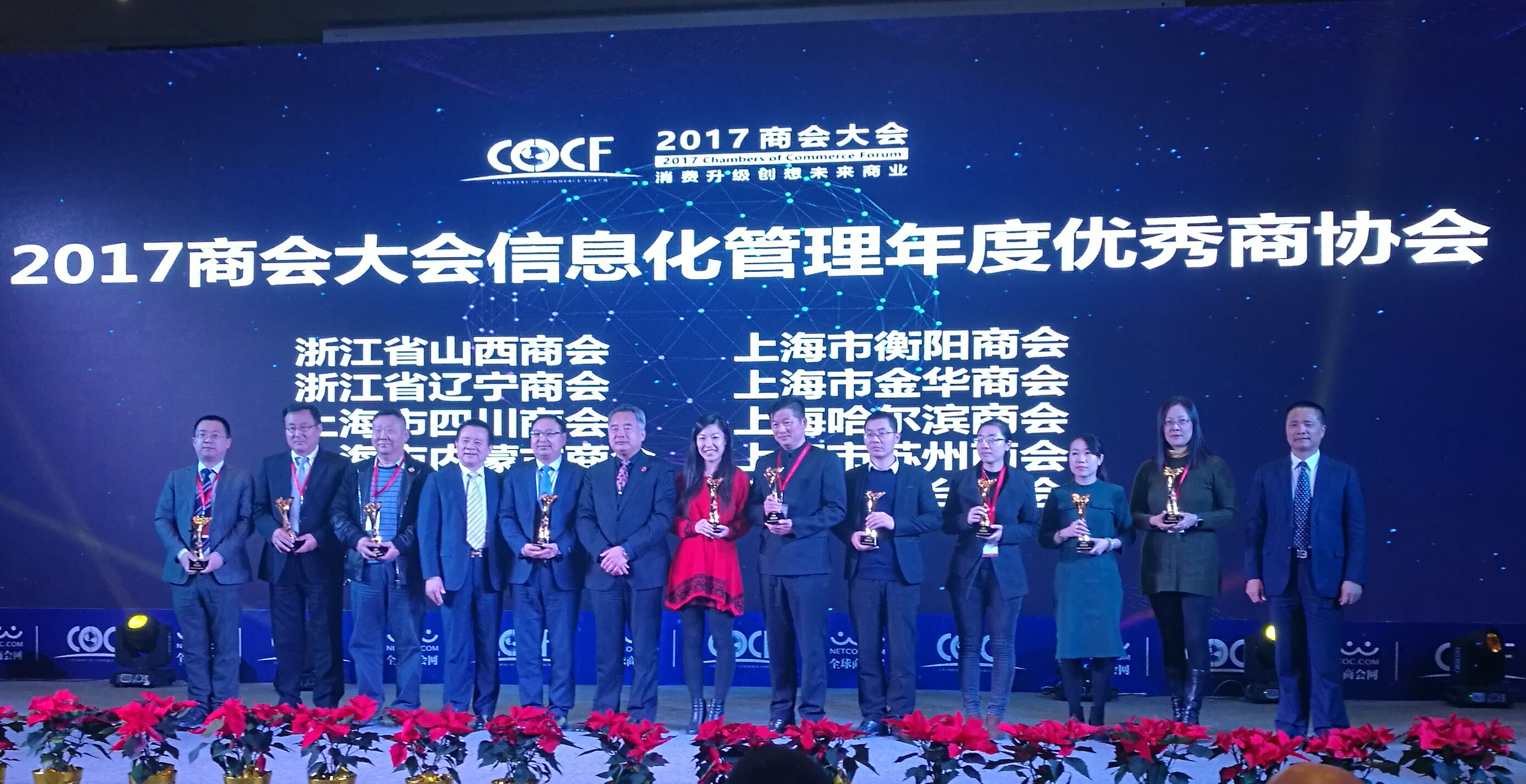 在20日晚宴颁奖环节,我会荣获“2017年商会大会信息化管理年度优秀商协会”荣誉。