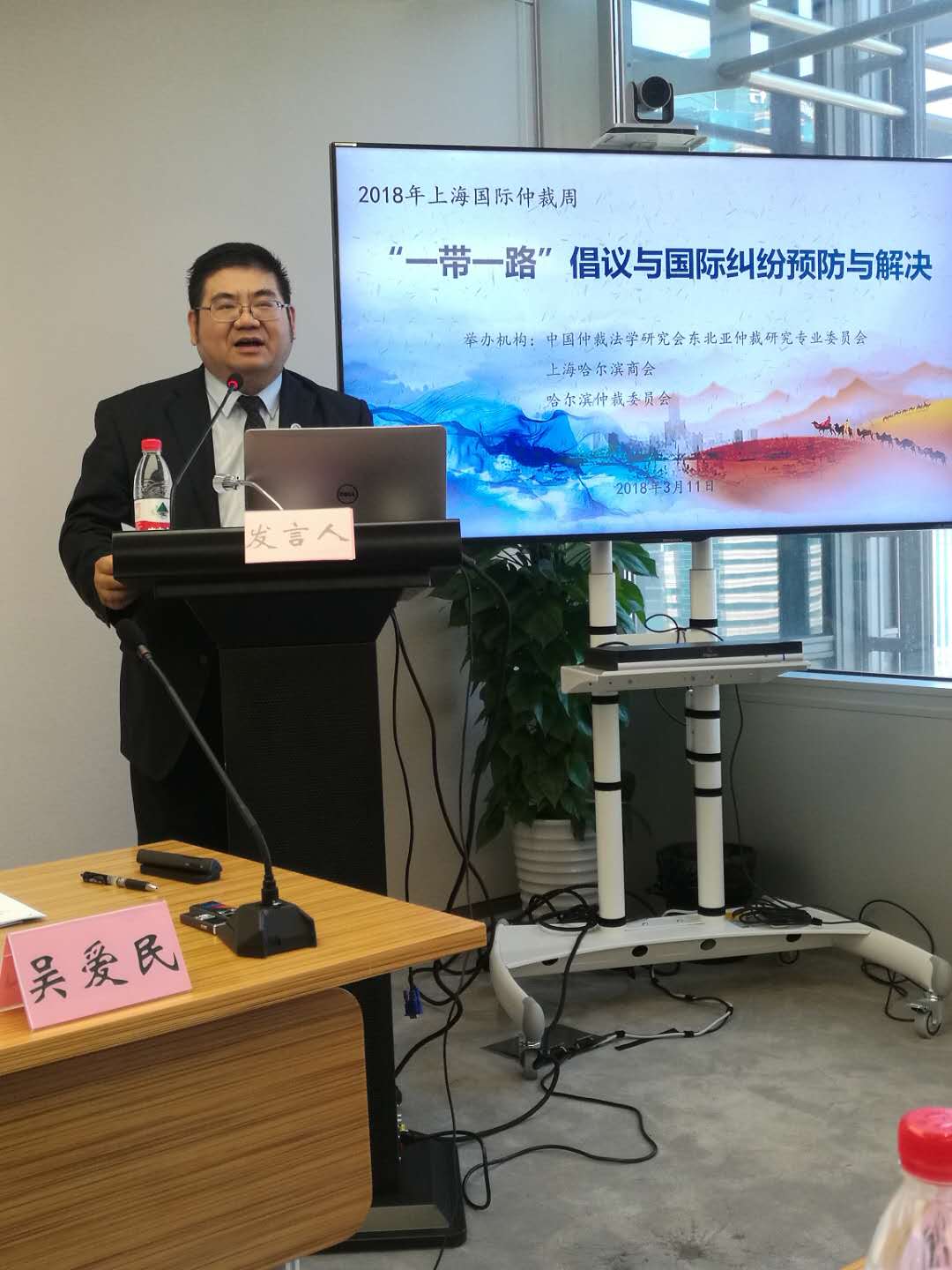 论坛由哈尔滨仲裁委员会常务副会长兼秘书长吴爱民主持。 论坛上中国仲裁法学研究会专职副秘书长陈建、上海大学ADR与仲裁研究院秘书长袁杜鹃、德国商业银行股份银行有限公司中国区法务负责人周成杰、北京金诚同达(上海)律师事务所主任赵平、上海政法学院校长刘晓红等出席嘉宾就“一带一路”背景下,调解在国际投资争端仲裁解决中的运用、在“一带一路”倡议下跨境支付纠纷的预防和解决、仲裁机构的选择与实践、国际投资仲裁的相关问题等做了精彩的发言。