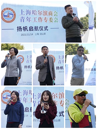 2021年11月14日,在商会会长团队的积极倡导、认真落实、有序推进以及“9+1商校联盟”的支持下,上海哈尔滨商会青年工作专委会启动仪式在淀山湖东兴游艇俱乐部帆船基地成功举行。我会会长王雪松,联席会长孙洪杰、张文宏,执行会长乔佰文、姚磊、孙喜、张晖,常务副会长丁学、陶万强、孙磊,理事郝刚,会员姜立航、李卓、李宝明、汪海丰等一起参加了活动,启动仪式特邀了哈尔滨市人民政府驻上海办事处单颖主任、商校联盟校友代表、商会二代少年代表、青年代表等计70余人共同见证了这一重要时刻。