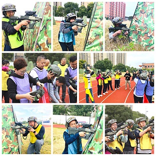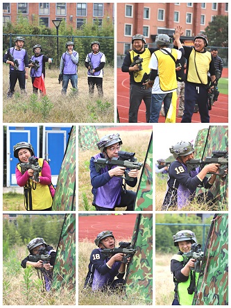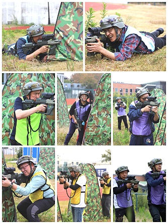 团队融合项目——真人CS,展现了各组统一指挥、机智判断、随机应变的能力。