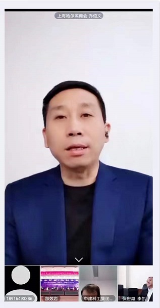 随后,部分商会和企业家代表发言。我会执行会长乔佰文代表商会通过视频祝贺此次线上宣传推介会的顺利召开,并在发言中表示:上海哈尔滨商会一直秉承着服务家乡政府的理念,积极协助和支持家乡招商引资工作,助推龙江经济发展,在今后的工作中,我们要一如既往充分利用长三角地缘优势,发挥商会坚实的桥梁和纽带作用,促进两地合作交流,助力家乡地方经济繁荣昌盛。