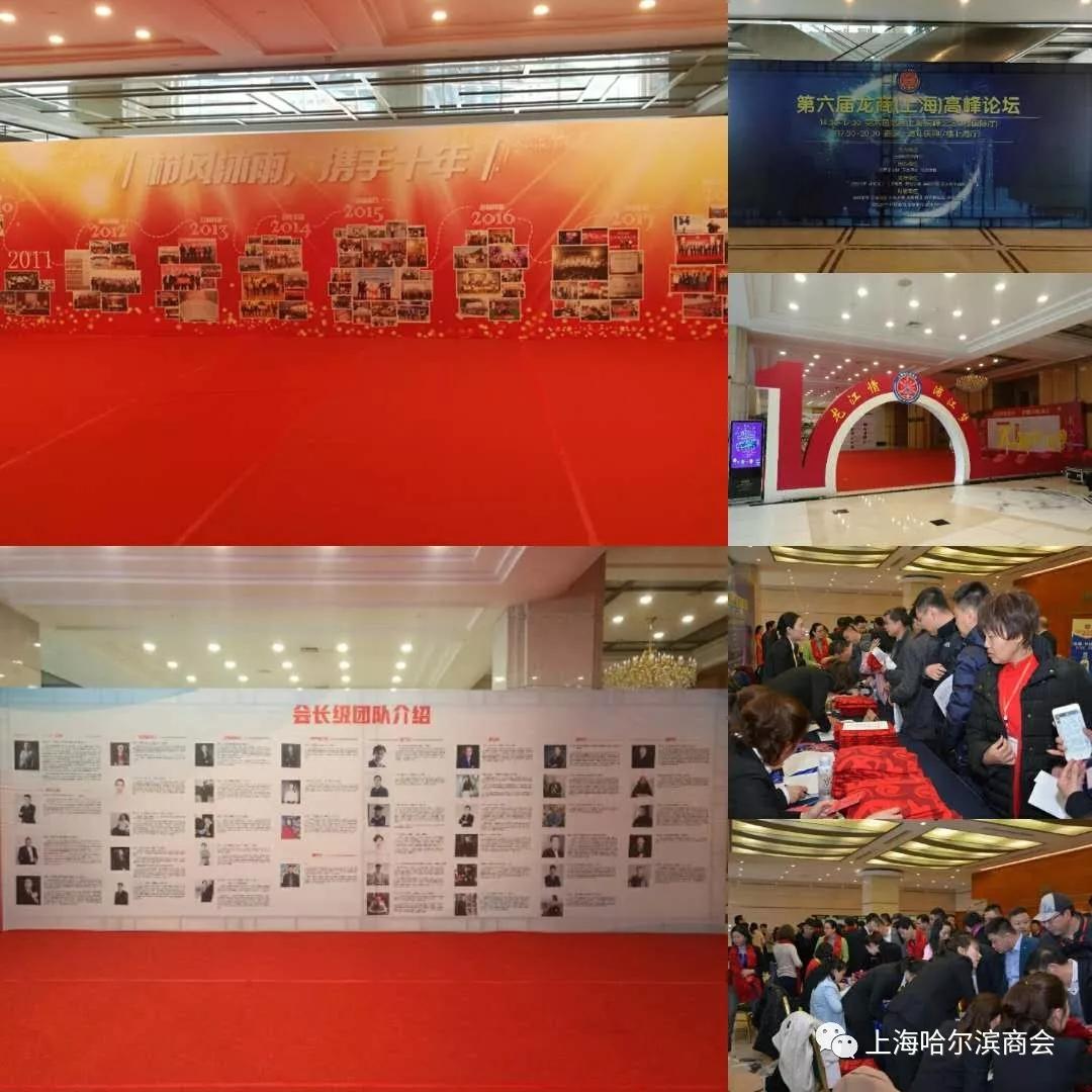 2018年3月17日,上海哈尔滨商会第六届龙商(上海)高峰论坛暨十周年庆典活动在上海国际会议中心盛大召开。上海及哈尔滨两地政府、工商联的领导,35家全球龙商会长和秘书长,132家全国各地在沪商会及上海行业协会的会长和秘书长,商会会员等近千人共襄盛举。