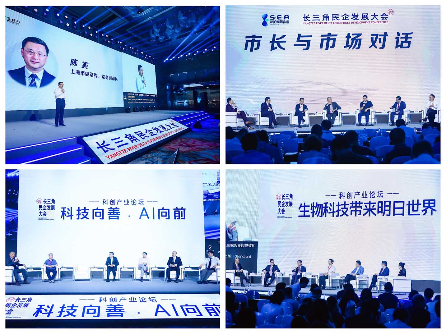 会议期间,与会政府领导、专家学者和知名企业家分别就“科技向善·AI向前”、“生物科技带来明日世界”、“长三角一体化进行时:共话当下与未来”和“长三角市长与市场对话”等主题进行了探讨和分析。此次论坛旨在共同携手搭建了长三角区域民营企业家与央企、国企和政府之间联系的桥梁,并在此基础上建立长效的沟通机制,以推动企业家彼此间的积极互动,企业家与政府间的信息互通,共同服务于中国经济的高品质发展。