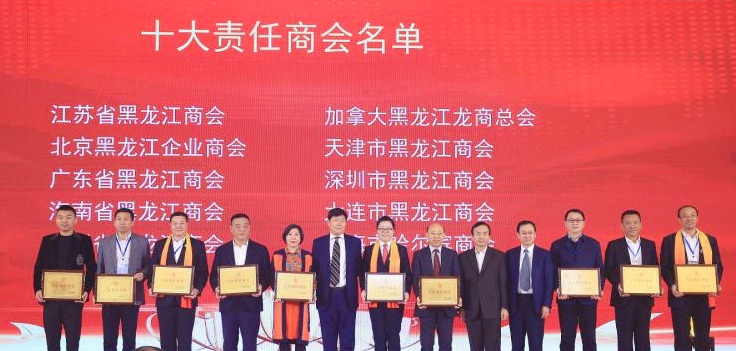 论坛闭幕后与会嘉宾应邀出席了江苏省黑龙江商会换届大会暨江苏省黑龙江商会六周年庆典活动,并举行了“十大责任商会”颁奖仪式以及第五届龙商国际联盟高峰论坛交接旗仪式。