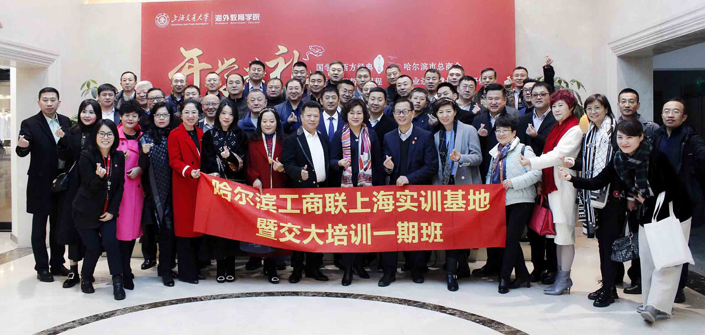 为积极落实《中共中央国务院关于营造企业家健康成长环境弘扬优秀企业家精神更好发挥企业家作用的意见》,充分利用上海国际区位中心的优势,搭建沪哈企业合作新平台,探索企业家培训新模式,2019年12月7日,由哈尔滨工商联和我会联合共建的哈尔滨工商联上海实训基地揭牌暨交大培训一期班在上海交通大学海外教育学院顺利举办。哈尔滨市政协常委副秘书长、哈尔滨市工商联主席徐伟,哈尔滨市工商联副主席王旭东,上海交通大学海外教育学院党总支书记姚奕,我会会长王雪松,执行会长张晖,常务副会长乔佰文、尹谦,以及参加培训的企业家学员共60余人参加。