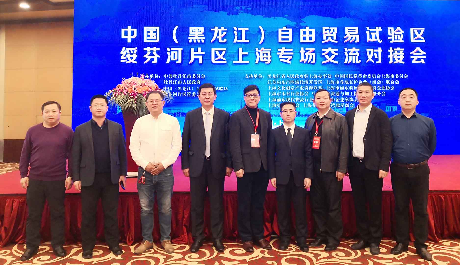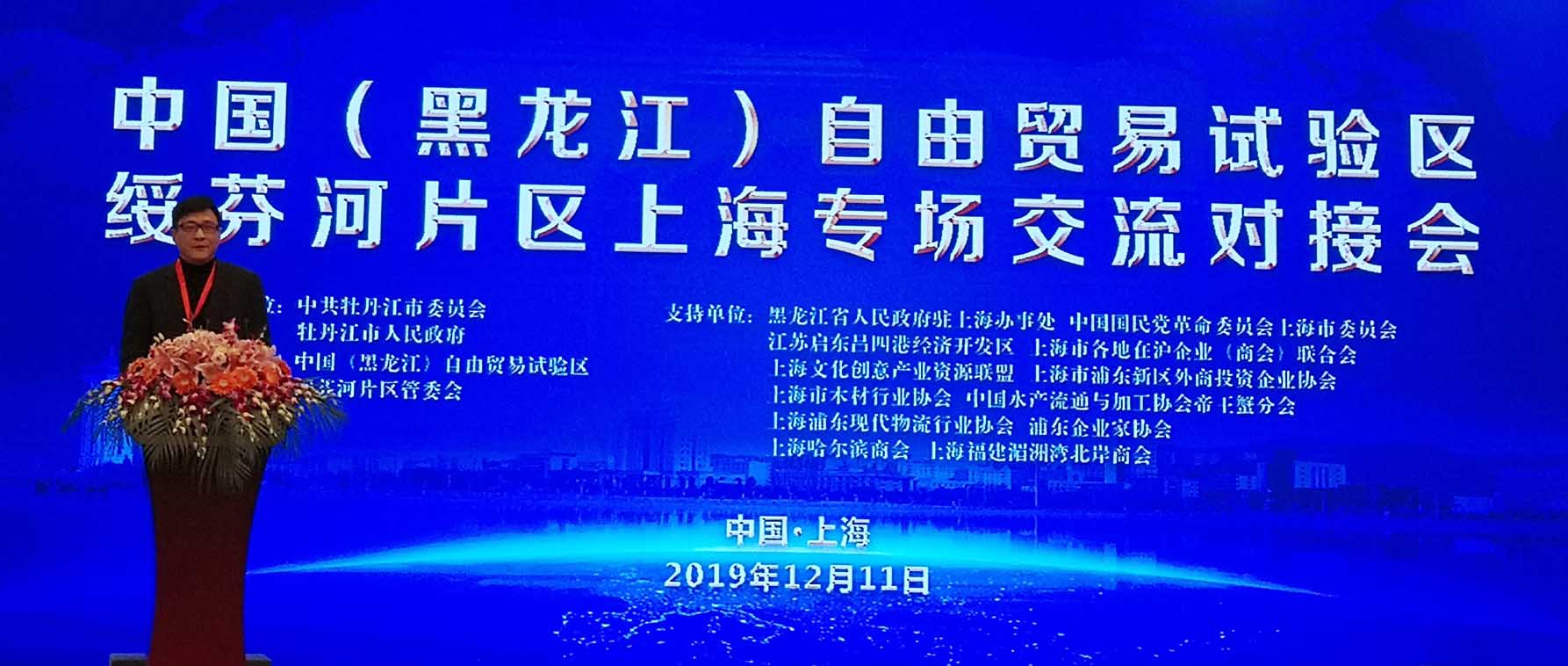 2019年12月11日上午,由中共牡丹江市委员会、牡丹江市人民政府主办,中国(黑龙江)自由贸易试验区绥芬河片区管委会承办,我会联合多家商协会共同协办的中国(黑龙江)自由贸易试验区绥芬河片区上海专场交流对接会在上海华亭宾馆举行。牡丹江市委、绥芬河市委相关部门领导,来自世界500强和国内行业领军的220余家企业参加会议。我会执行会长姚磊、创会秘书长田磊、常务副会长王恒坤、副会长徐海峰、会员周胜国组团参加。