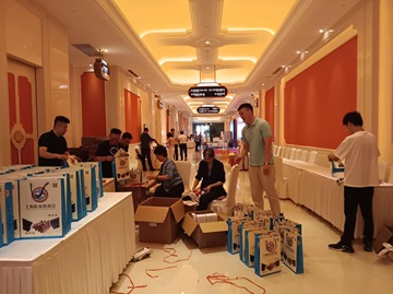 活动筹备期间,志愿者们主动承担多项繁杂工作。通过电话逐一邀约会员,耐心解答疑问,确保每位受邀者感受到诚意;签到处,志愿者化身“活地图”,从停车场指引到身份核验,从签到台引导至开会区,让每位来宾感受到宾至如归的温暖;面对堆积如山的年会物资,他们分工协作,搬运、清点、存放,汗水浸透衣衫却毫无怨言;精心分装伴手礼时,注重细节,从包装到摆放都力求完美;整理开会资料更是一丝不苟,分类归档、核对信息,保障会议流程顺畅。